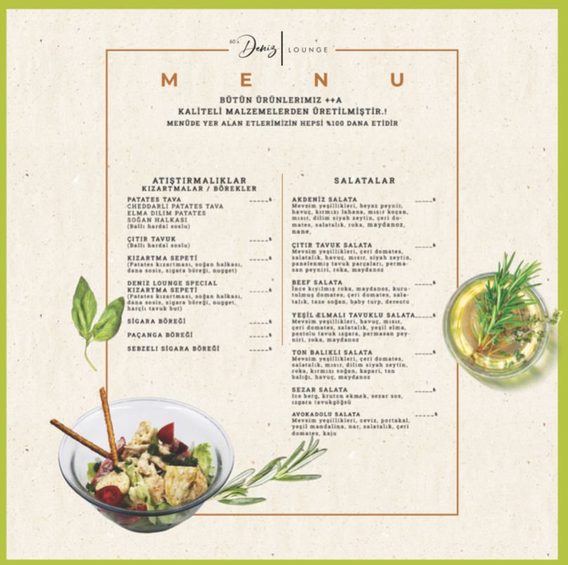 Deniz Lounge Menu